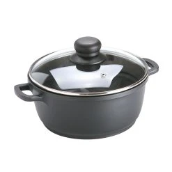 Der Kochtopf Crispy Induction von SSW eignet sich für alle gängigen Herdarten, sowie Induktion. Der formschöne Glasdeckel ist bis zu 180°C hitzebständig. Praktisch ist auch die schnelle Aufnahme und Speicherung von Wärme, somit ist der Kochtopf energie- und zeitsparend. Aufgewärtet wird er durch die schwarzen Griffe mit Aluminium-Guss.