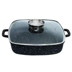 Der Schmorbräter Crispy Induction von SSW mit robuster Aluminium Qualität eignet sich besonders für scharfes Anbraten von Schmorgerichten, Braten, Steaks und Koteletts. Durch die schnelle Aufnahme und Speicherung von Wärme ist der Schmorbräter energie- und zeitsparend. Ein weiteres Highlight ist der Glasdeckel mit einem Aroma-Knopf zum praktischen Hinzufügen von Flüssigkeiten während des Kochvorgangs.