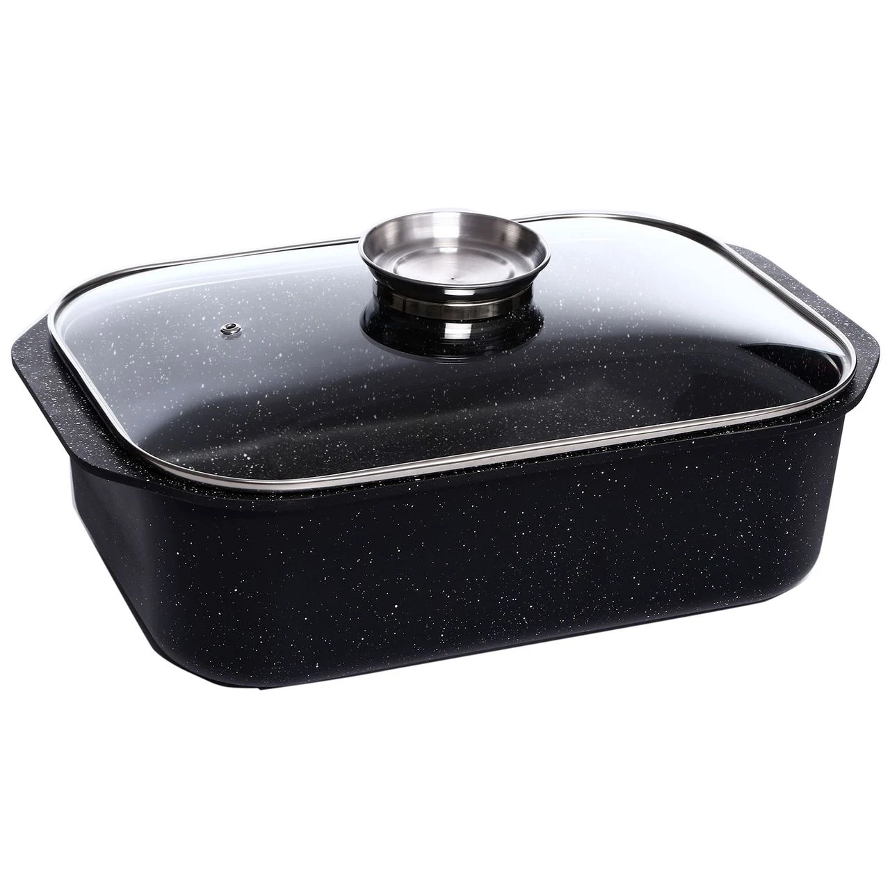 Der robuste Schlemmerbräter im trendigen Granit-Design von SSW aus hochwertiger Aluminum-Qualität eignet sich für scharfes Anbraten von Schmorgerichten, Braten, Steaks oder Koteletts. Der Bräter ist besonders energiesparend und kann auf allen gängigen Herdarten genutzt werden, auch Induktion. Ein weiteres Highlight ist der Glasdeckel mit einem Aroma-Knopf zum praktischen Beträufeln des Bratgutes.