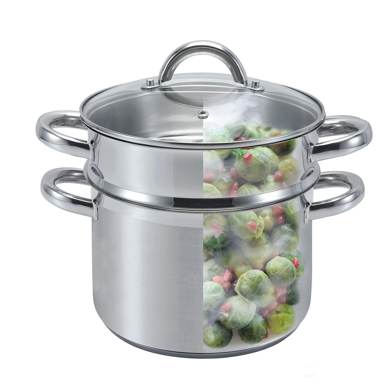 Der 3-teilige Dampf-Kochtopf Vitalo von SSW ist ideal zum Garen von Fisch, Kartoffeln oder Gemüse. Die genieteten und ergonomischen Edelstahlgriffe, dienen zur besseren Handhabung. Der Dämpfeinsatz kann zusätzlich als Abtropfsieb verwendet werden.