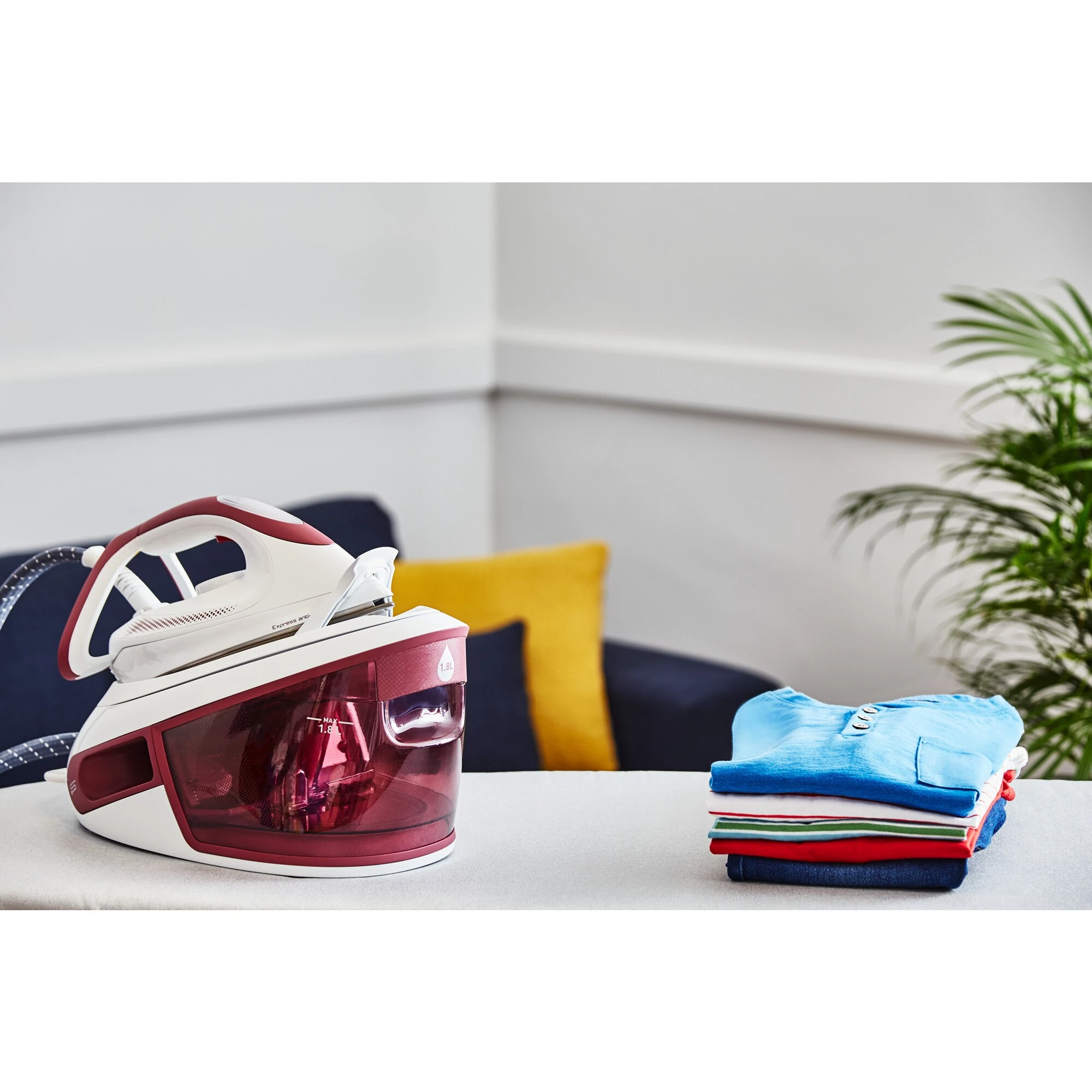 Die Express Anti-Calc Dampfbügelstation liefert schnelle und mühelose Ergebnisse und dauerhaft hohe Leistungen. Sie ist mit einem verbesserten Wartungssystem ausgestattet und bietet eine hervorragende Dampfleistung, die für jede Gewebeart geeignet ist. Der herausnehmbare Kalk-Kollektor sorgt für eine mühelose Wartung, eine längere Produktlebensdauer und höchste Effizienz. Eine kontinuierliche Dampfabgabe von 120 g/min und 6,2 Bar Pumpendruck verkürzen die Bügelzeiten, während die geballte Leistungskraft des 400 g/min Dampfstoßes selbst hartnäckigste Falten glättet. Die Dampfbügelstation bietet praktische Funktionen für hervorragende Bügelergebnisse und ist mit einem manuellen Thermostat ausgestattet, das eine präzise Einstellung ermöglicht. Die Durilium AirGlide Bügelsohle zeichnet sich durch ausgezeichnete Gleiteigenschaften, hohe Beständigkeit und maximalen Bedienkomfort aus. Mit praktischem Türhaken für das schnelle vertikale Auffrischen zwischendurch.