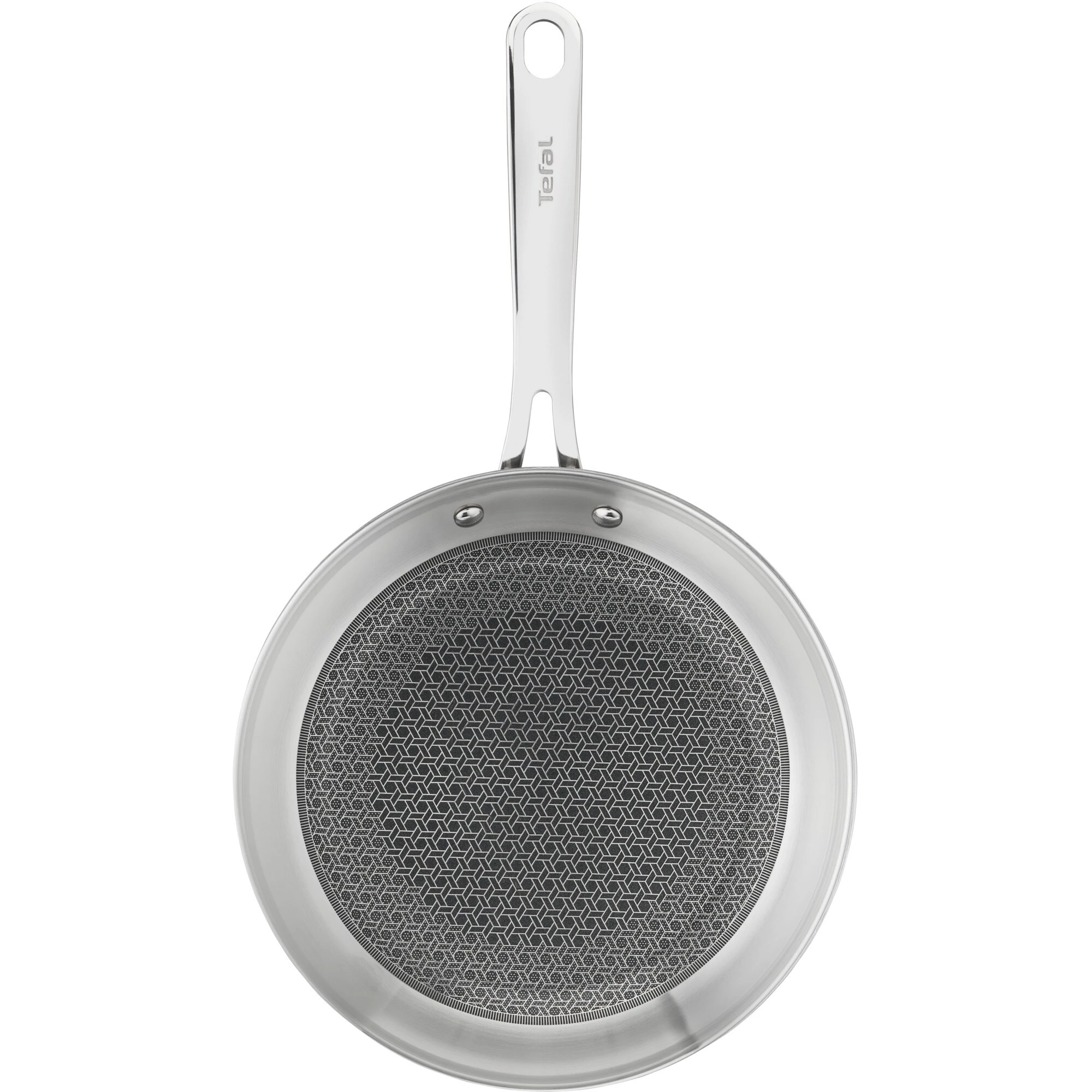 Die Eternal Mesh Pfanne von Tefal kombiniert die Vorzüge der Edelstahlpfanne mit denen einer kratzfesten Mesh-Versiegelung, um perfekte Bratergebnisse zu erzielen. Der dreischichtige Pfannenboden (Edelstahl / Aluminium / Edelstahl) sorgt für eine perfekte Hitzeverteilung und für gleichmäßige, köstliche Garergebnisse. Außerdem ist die Pfanne mit einem ergonomisch geformten Edelstahlgriff ausgestattet, der sicheren und komfortablen Halt bietet. Die edle Pfanne eignet sich für alle Herdarten (Gas, Elektro, Keramik und Induktion). Sie ist besonders vielfältig in der Küche einsetzbar und lässt sich mühelos reinigen.