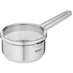 Das Tefal Nordica Kochgeschirr mit dezenter Ästhetik ist vom nordischen Lebensstil inspiriert und vereint klare, minimalistische Linien mit einem ausgeklügelten Design. Die Stielkasserolle eignet sich bestens für die Zubereitung schmackhafter Mahlzeiten für die ganze Familie, von Pasta und Reis bis hin zu köstlichen Saucen. Der unverzichtbare Edelstahl-Topf ist erstklassig verarbeitet, absolut sicher, robust und äußerst langlebig. Der robuste Wärmeverteilungsboden sorgt für ein perfekt gleichmäßiges Garergebnis, während der clevere Deckel das Kochen erleichtert. Der Siebdeckel mit patentierten Doppelgriffen und integrierten Ausgießern ist auf der einen Seite mit kleinen Öffnungen (für Reis und Gemüse) und auf der anderen Seite mit größeren Öffnungen (für Pasta) ausgestattet. Hierdurch gelingt das Abgießen sicher und mühelos. Die Stielkasserolle Nordica eignet sich für alle Herde, auch für Induktion.