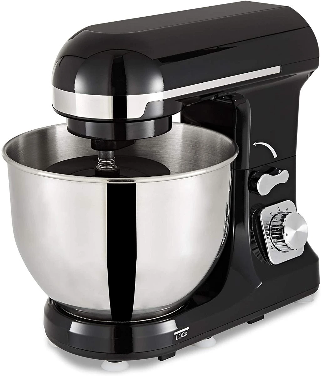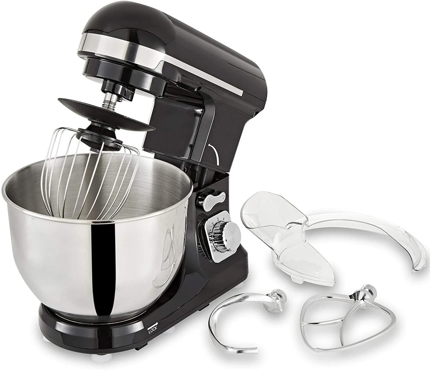 Topmatic Küchenmaschine PKM-1400.2 schwarz | Teigmaschine, Rühr- und Knetmaschine mit 5Liter Edelstahlschüssel und transparentem Spritzschutz