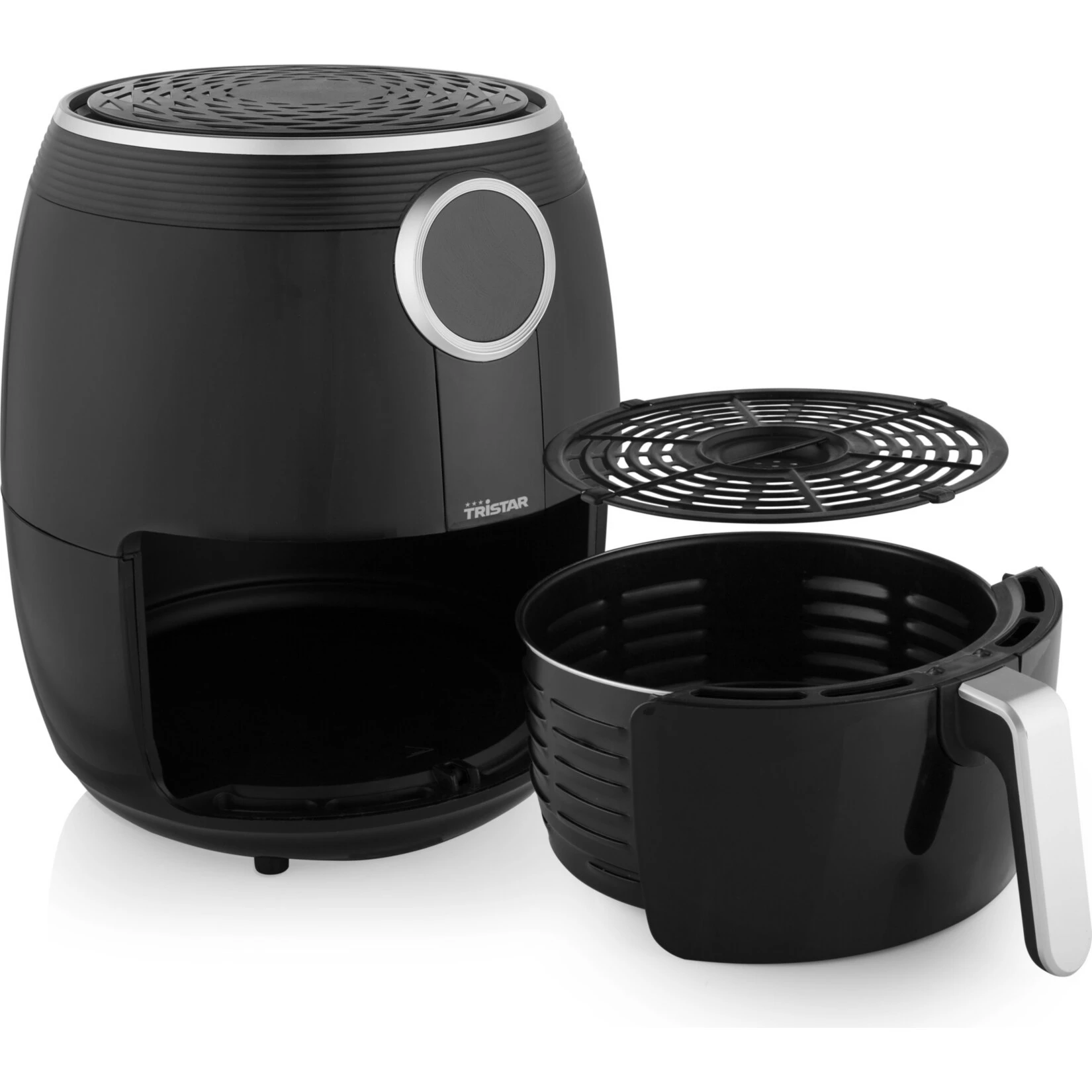 Mit einem Volumen von 4,5 Litern ist der FR-6956 Digital Crispy Fryer die perfekte Heißluftfritteuse für die ganze Familie. Der einzigartige Crispy Fryer verfügt über ein digitales Bedienfeld mit LCD-Bildschirm, wodurch die Fritteuse besonders einfach zu bedienen ist. Der Crispy Fryer verfügt über 8 Automatik-Programme, man kann aber auch selbst Zeit und Temperatur einstellen. Die Temperatur kann von 80 °C bis 200 °C und der Timer mit einem Alarm nach bis zu 60 Minuten eingestellt werden. Dank einer Leistung von 1500 Watt ist die Fritteuse sehr schnell einsatzbereit. Der Tristar Digital Crispy Fryer hat ein besonders großes Fassungsvermögen, so dass bis zu 1,2 kg Pommes gleichzeitig zubereitet werden können: Genug für die ganze Familie! Dank seiner Technologie, bei der heiße Luft mit hoher Geschwindigkeit zirkuliert, erhält man ein sehr knuspriges Ergebnis, ganz ohne oder mit ein wenig Öl. Der Crispy Fryer ist jedoch vielseitig einsetzbar und eignet sichr außerdem zum Backen, Grillen oder Braten. Auf diese Weise können problemlos Fleisch- oder Fischgerichte und Gemüse in der Heißluftfritteuse zubereitet werden, außerdem Sandwiches, Kuchen oder Torten. Für zusätzlichen Komfort ist der Tristar Digital Crispy Fryer mit einer Antihaftbeschichtung versehen, die sehr pflegeleicht ist. Da sich der Korb problemlos aus dem Crispy Fryer entnehmen lässt, ist die Reinigung auch in kürzester Zeit erledigt. Für Sicherheit sorgen ein Überhitzungsschutz und rutschfeste Füße. Darüber hinaus lässt sich der Korb mit dem „Cool Touch“-Griff sicher aus dem Crispy Fryer entnehmen.