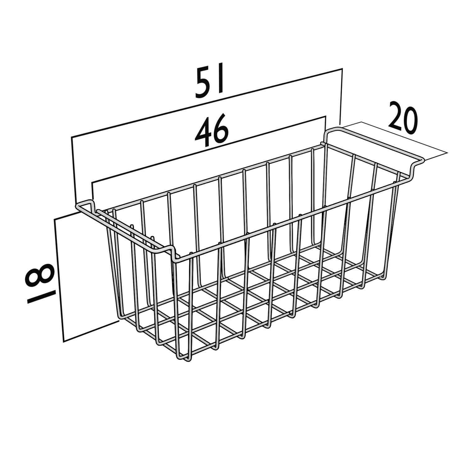Die Außenmaße des Einlegekorbes messen 51cmx20cmx18cm.