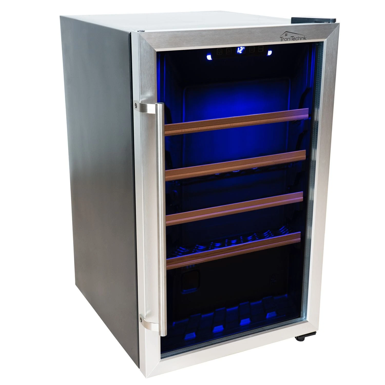 Der Weinkühler bietet nicht nur ein gutes Aussehen, sondern ermöglicht dank einem Fassungsvermögen von 126 Litern (54 Flachen) eine große Menge an Stauraum.