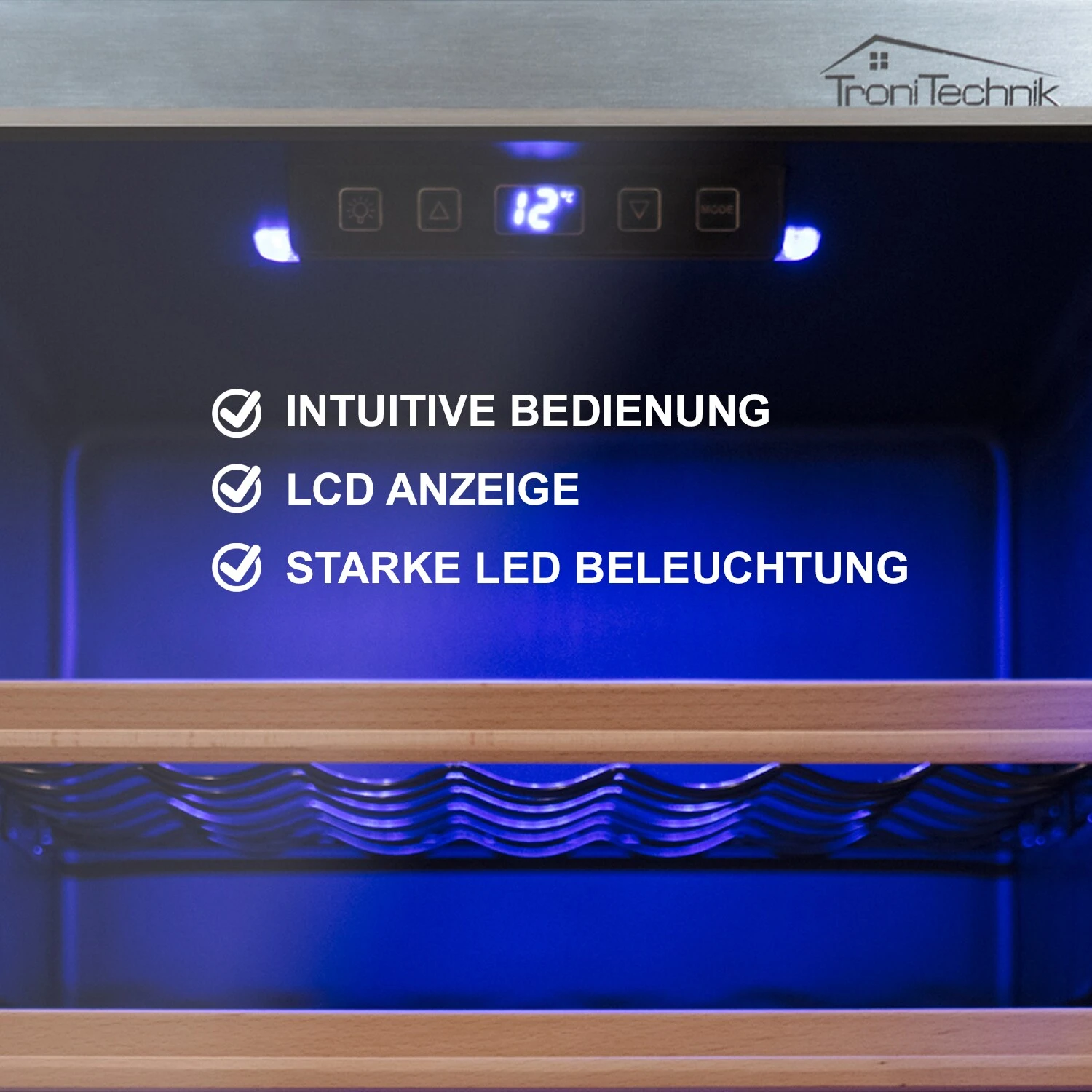 Für einen abgestimmten Weingenuss und die damit verbundene Trinktemperatur sorgt die Temperaturregulierung. Diese können Sie per Knopfdruck über die LCD-Anzeige im oberen Bereich von 5 bis 18°C regulieren.