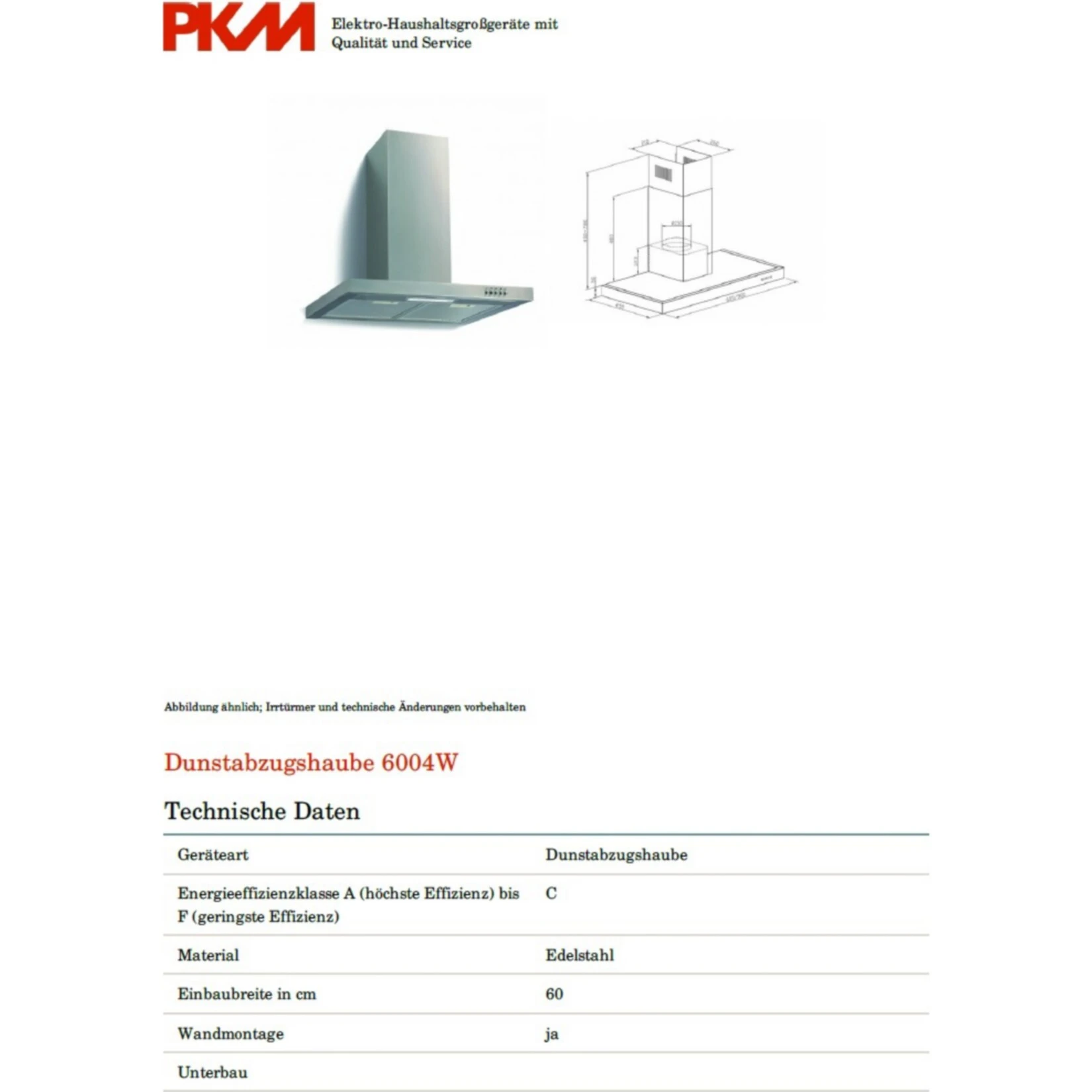 PKM 6004W Dunstabzugshaube 60cm Edelstahl + Aktivkohlefilter CF150