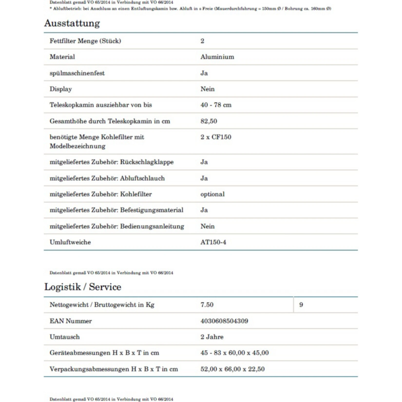- Abluft*- oder Umluftbetrieb möglich ,die optionalen Aktivkohlefilter CF150 neutralisieren Gerüche im Umluftbetrieb finden Sie in unserem Shop.