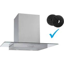 Kamin-Dunstabzugshaube aus Edelstahl mit 2 waschbaren Metallfettfiltern (Spülmaschinenfest).
