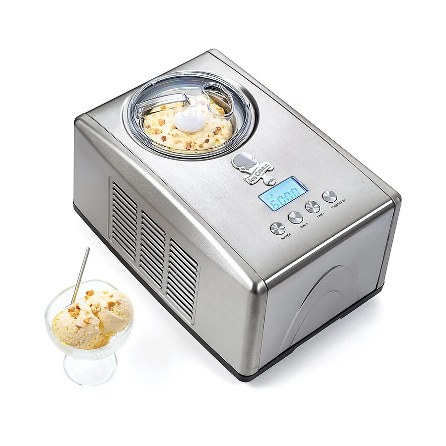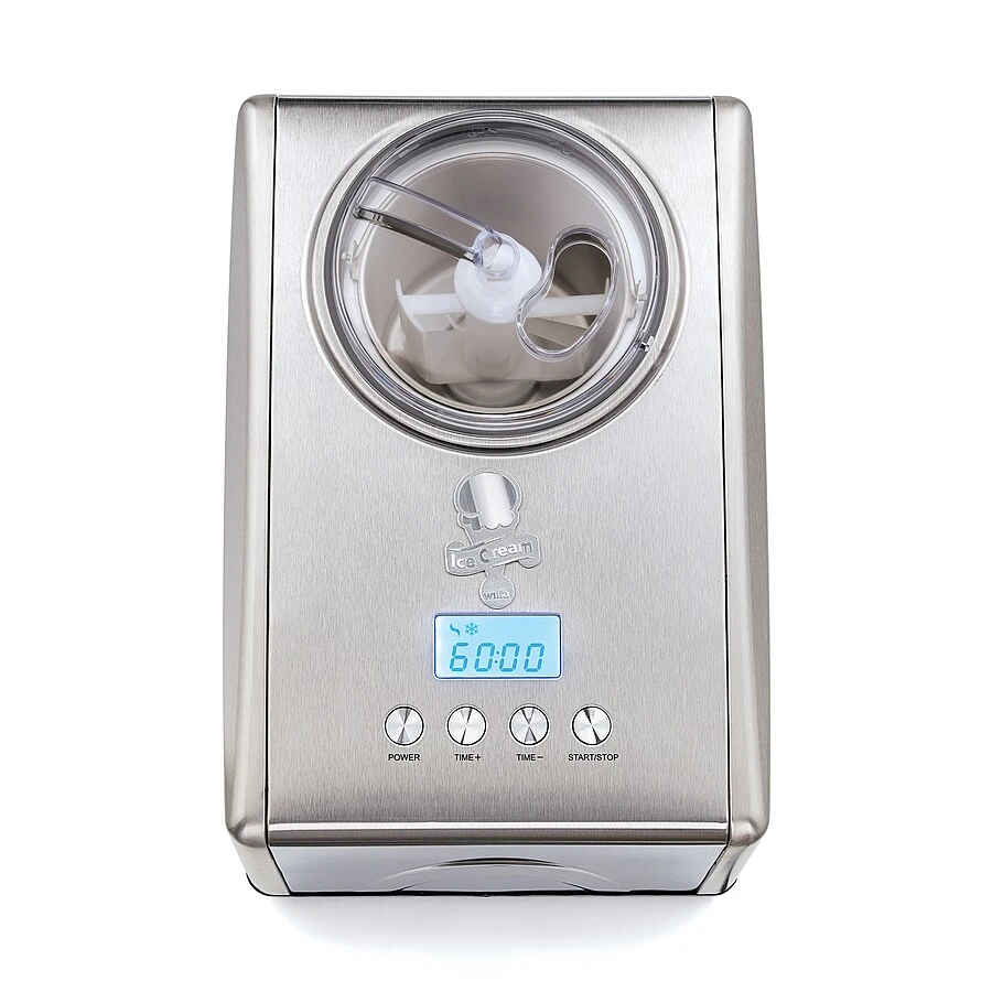 Die VANILLA Speiseeismaschine von Wilfa zaubert innerhalb einer Stunde Eis, Sorbet sowie Frozen Yoghurt und hält dank der Kühlfunktion für eine Stunde kalt. Zudem verfügt die Eiscreme-Maschine über eine Timer Funktion und die Möglichkeit, verschiedene Gefriertemperaturen einzustellen. Dies geschieht anhand des großzügigen LCD-Displays. Das Fassungsvermögen beträgt 1,5 Liter, jedoch ist die kleine Eismaschine dank des kompakten Designs sehr platzsparend. Des Weiteren verfügt der Speiseeisbereiter über einen Kompressor, der die Zutaten zwischen -18 und -35 Grad gefriert und somit ein Vorgefrieren unnötig macht. Dank der automatischen Mischfunktion wird das Eis besonders cremig und weich.