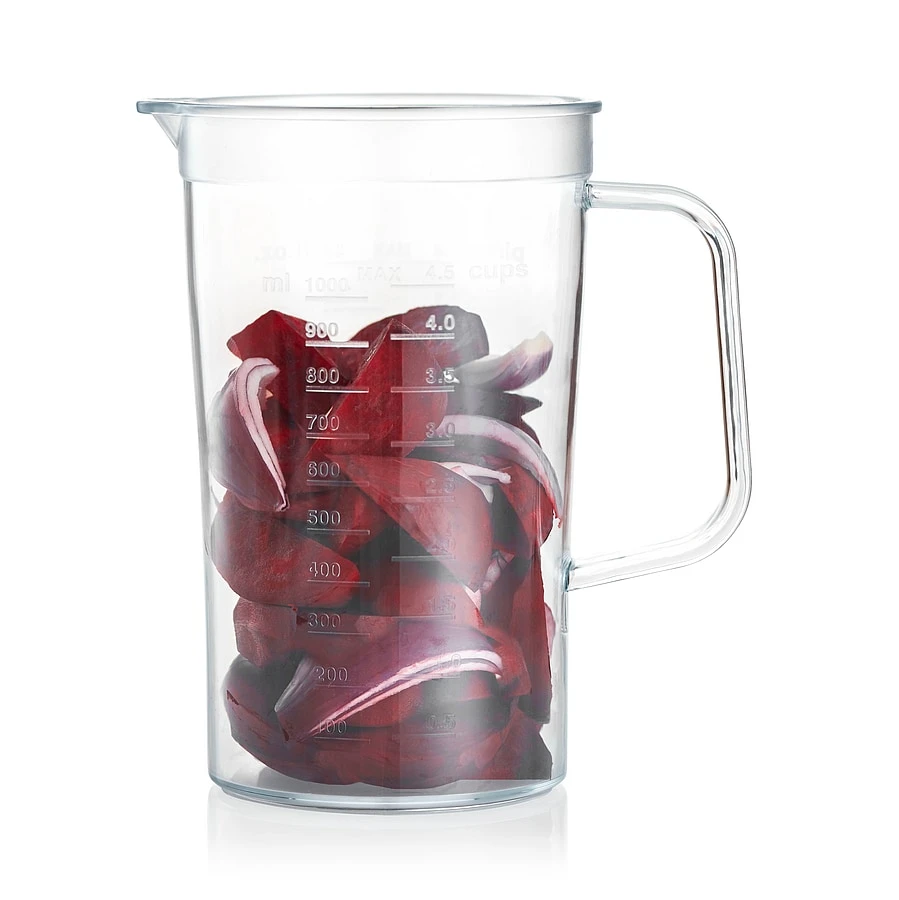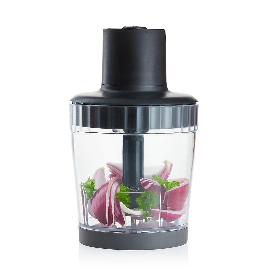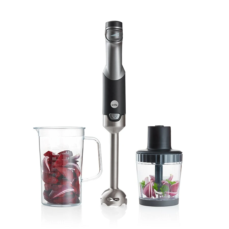 Ein leistungsstarker 1000-Watt-Motor macht den Wilfa Stabmixer SM1000FP zum ultimativen Werkzeug für all Ihre Kochvorhaben. Die Geschwindigkeit des Geräts können Sie individuell einstellen. Sie finden sicher die passende Option für die Leistung, welche Sie für den Mixvorgang benötigen. Auch festere Zutaten werden demnach mühelos zerkleinert. Dank des gummierten Griffs liegt der Stabmixer gut in der Hand und Sie haben einen festen Halt beim Pürieren. Außerdem lassen sich die einzelnen Bestandteile des Geräts einfach abnehmen und ohne Weiteres reinigen. Lästige Rückstände haben dementsprechend keine Chance. In dem beigefügten großen Mixbehälter lassen sich Zutaten einfach pürieren und in dem Mini-Zerkleinerer können bspw. Zwiebeln einfach zerhackt werden. Darüber hinaus ist ein Schneebesen inklusive.