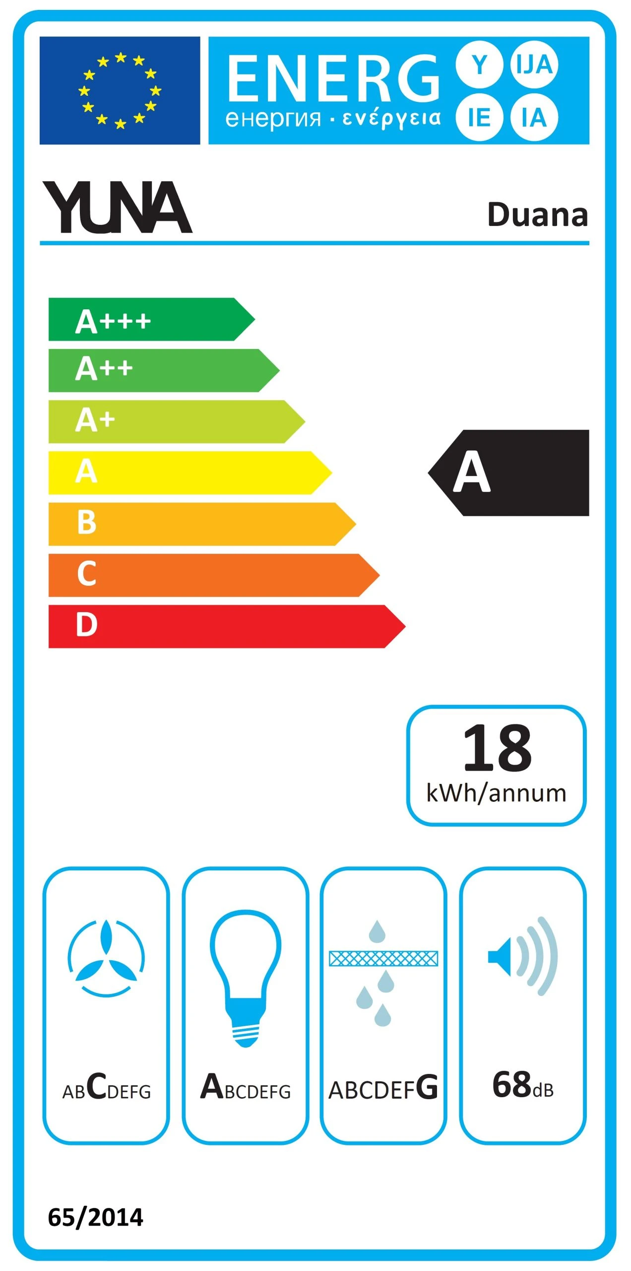 Die Kopffreihaube ist für den Abluft- und Umluftbetrieb geeignet. Im Inneren der Haube verbirgt sich ein spülmaschinenfester Fettfilter aus Aluminium. Dämpfe und Gerüche werden über den Abluftschlauch hinausbefördert. Für den Umluftbetrieb kann der separat erhältliche Kohlefilter YUNA KAF4 genutzt werden. Der Teleskopkamin ist ausziehbar auf einer Länge von 33-63 cm.