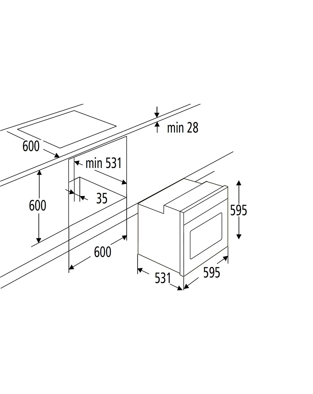 - Einbaumaße (HxBxT) 59,50 x 59,50 x 53,10 cm