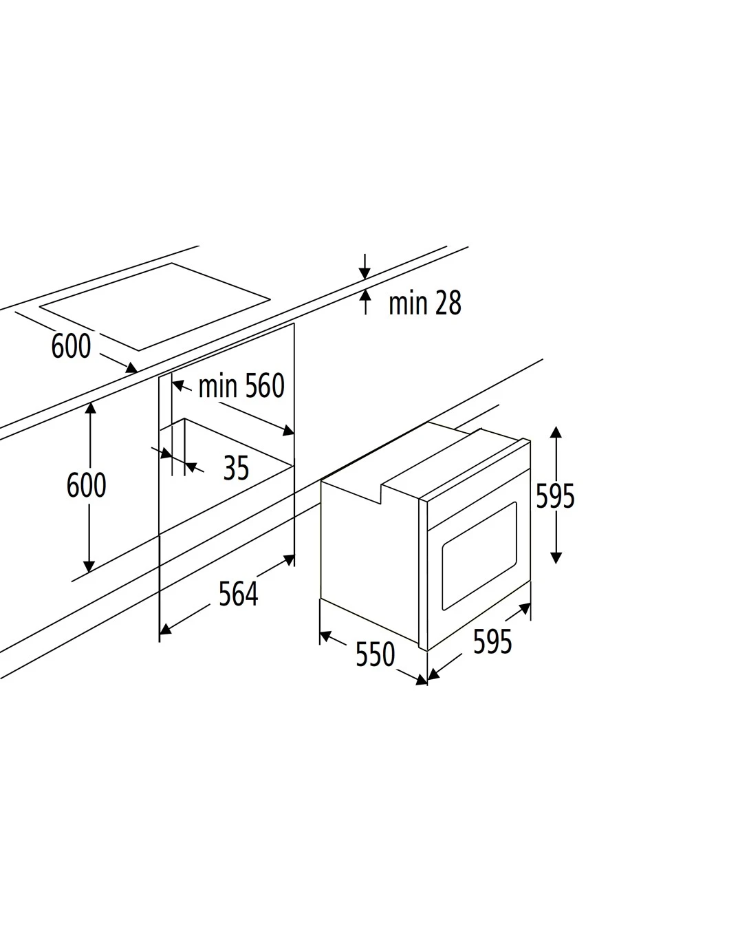 - Einbaumaße (HxBxT) 59,50 x 59,50 x 53,10 cm